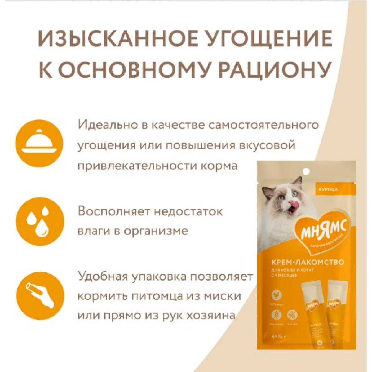 Мнямс Крем-лакомство для кошек с курицей 15 г х 4 шт