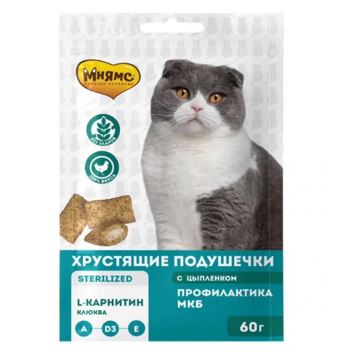 Мнямс хрустящие подушечки  "Профилактика МКБ" для стерилизованных кошек с цыпленком и клюквой 60 г